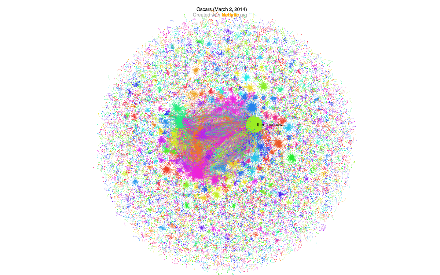 The focus of this post is to demonstrate how to use and interpret the network visualization feature in Netlytic using tweets about Oscars as a case study.