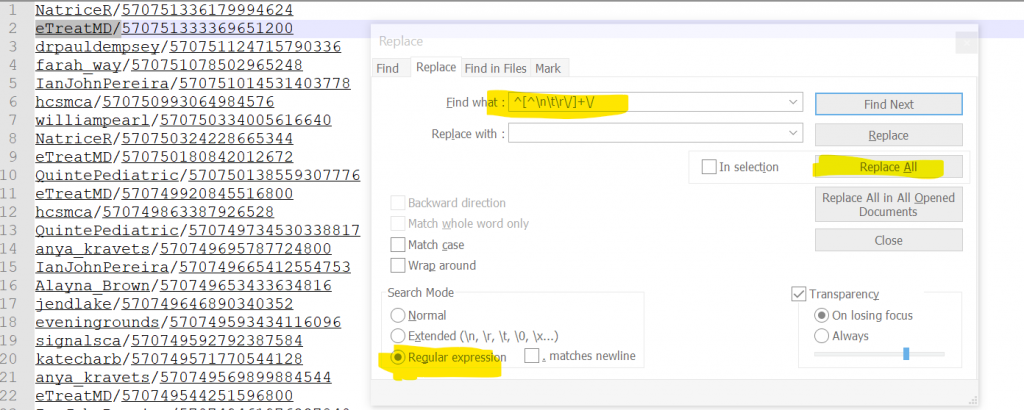 Step 1: Install a free text editor that supports regular expressions such as Nodepad++