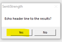 Note: Before the analysis starts, SentiStrength will ask you if you wish to add a header row in the resulting file; select “Yes”: