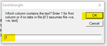 Note: SentiStrength will also ask you which column to use for the analysis; enter “1”: