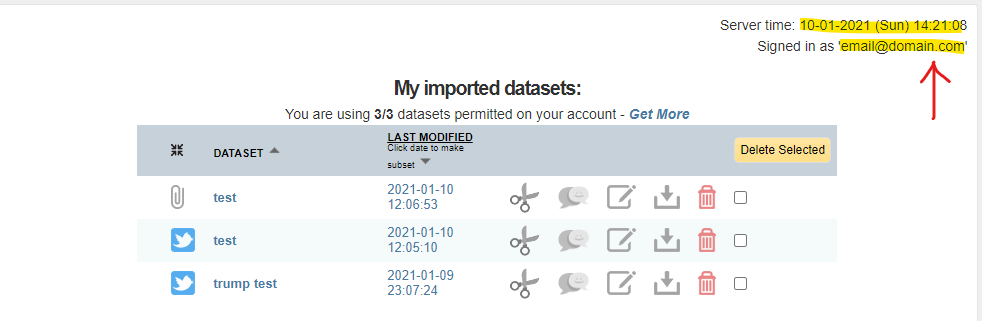 - your account’s email address, which is especially useful to know if you are managing and using multiple Netlytic accounts.