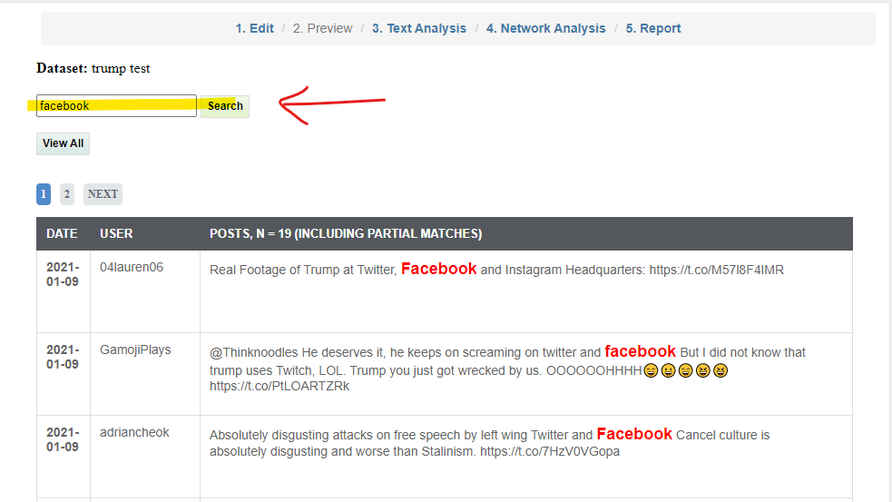 - You can now review and search for relevant posts using keywords in the Preview step. (Use this to confirm that your data collection query is surfacing posts of the types you expect. If it’s not, consider modifying your search criterias.)