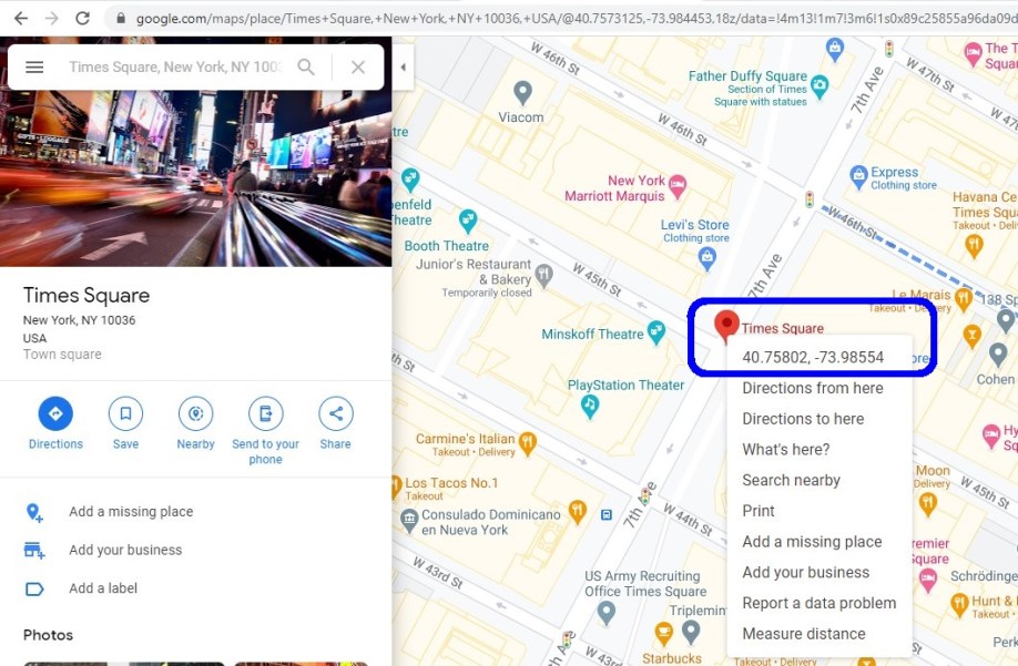 - To copy these two numbers into your clipboard, simply click on them, and Google Maps will save them for you into the clipboard for later use.