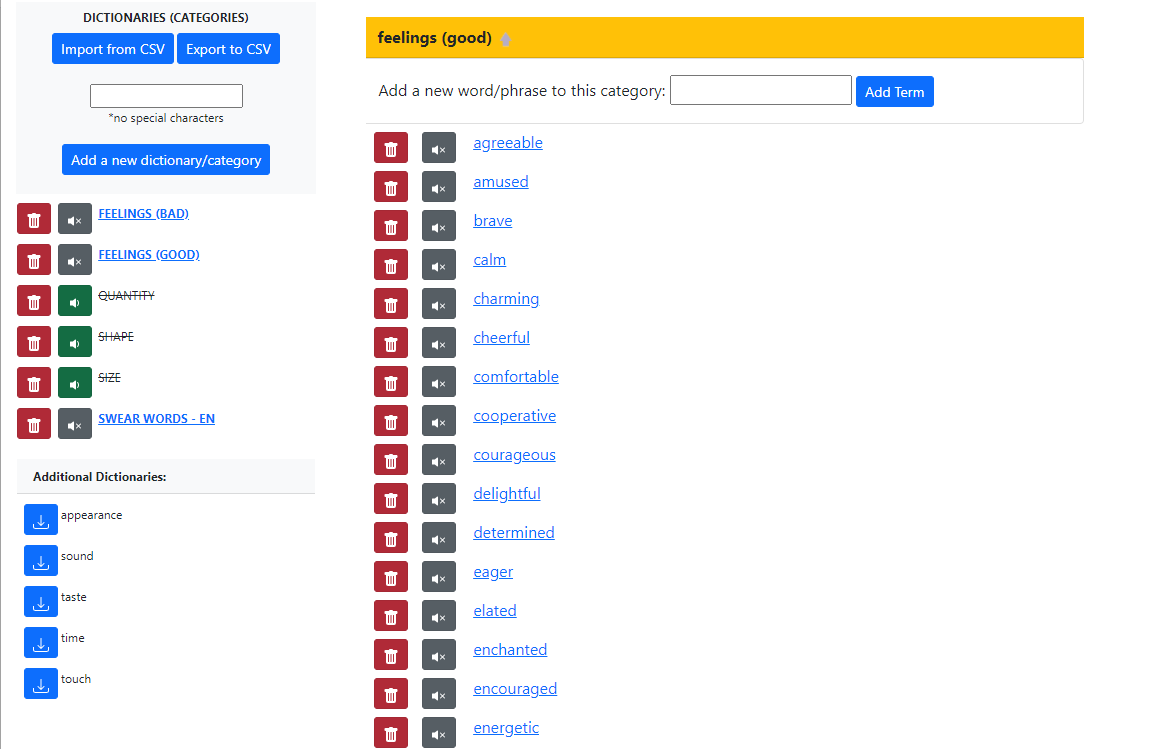 - You can now access an easy-to-use interface for managing Dictionaries (Manual Categories) of words/phrases for Text Analysis